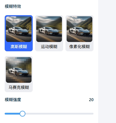 根据需求点击对应模式卡片,比如“高斯模糊”,再根据需求调节模糊强度,AI会自动处理。