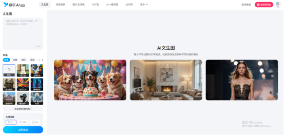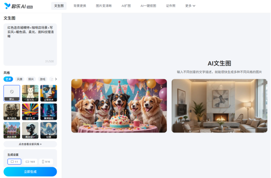 作为免费文生图AI工具中的代表性产品,移乐AI文生图的最大亮点是“完全免费”——无试用次数限制、无付费墙,支持无限次文生图创作。工具内置黑白电影、油画、水彩、漫画等数十种风格模板,即使输入简单提示词也能生成效果尚可的图像。