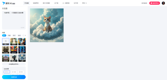 ● 最后,移乐AI文生图在风格覆盖方面也表现出色,能够兼顾实用与创意。值得一提的是,移乐AI文生图还具备一键生成多尺寸图像的特色功能,支持16:9、1:1、4:3等多种常见尺寸,用户无需再为图像尺寸的调整而烦恼,生成的图像可以直接适配自媒体、PPT、电商等不同场景,满足用户在不同平台上的使用需求。