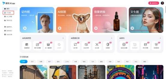 步骤1.网页搜索并打开“移乐AI网站”,点击进入“文生图”工具。