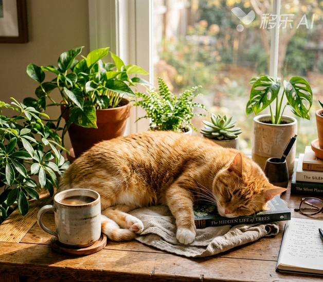 举个例子,输入“一只橘猫趴在阳光下的书桌上,周围有绿植和咖啡杯,暖色调,写实风格”,AI 会结合描述生成符合要求的图片。整个过程无需懂设计软件、学专业术语,只要说清需求就能得到想要的视觉效果,这也是它受零基础用户欢迎的原因。