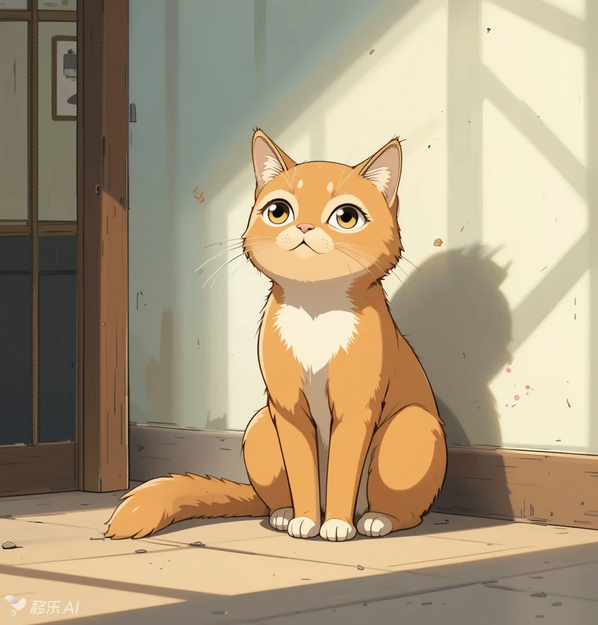 案例示范:(卡通风:1.2),8K高清,9:16竖屏,风格化程度:0.8,一只橘猫,柔和光影,-杂乱元素;