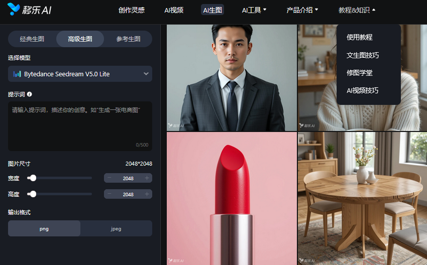 2. 移乐 AI 生图怎么用?专属功能实操?