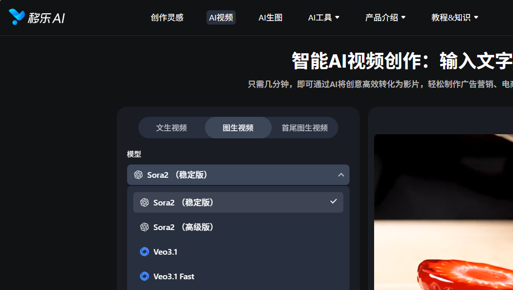 这正是移乐AI视频生成工具这类聚合平台的价值所在。它集成了包括Sora 2、Veo、Seedance等多种顶尖模型,让你可以根据不同的节奏需求,像“换镜头”一样切换模型。