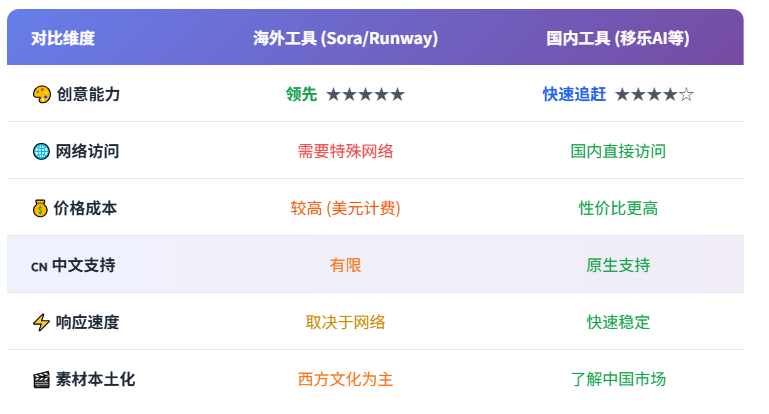 二、海外vs国内AI视频工具对比