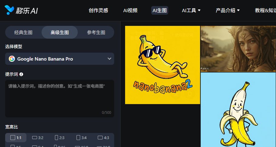 文生图:输入精准文本提示词,AI通过生成式算法,直接生成符合需求的静态图片素材,无需拍摄或设计基础,适合没有素材的场景。如移乐AI生图、Midjourney、DALL·E 3。