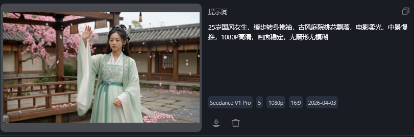 新手写Prompt有规律可循,掌握“主体+动作+场景+风格+镜头+画质+禁忌”的万能公式,就能快速写出优质Prompt。例如生成国风短视频,错误提示词是“穿着古装的女生走在街上”,优秀提示词是“25岁国风女生,缓步转身拂袖,古风庭院桃花飘落,电影柔光,中景慢推,1080P高清,画面稳定,无畸形无模糊”。
