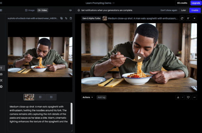 ✅ 优点:画质顶尖,写实效果好,细节还原度高;光影、质感表现出色,适合做写实类、场景类视频;能与Midjourney生图功能联动,生成图片后可直接转化为视频。