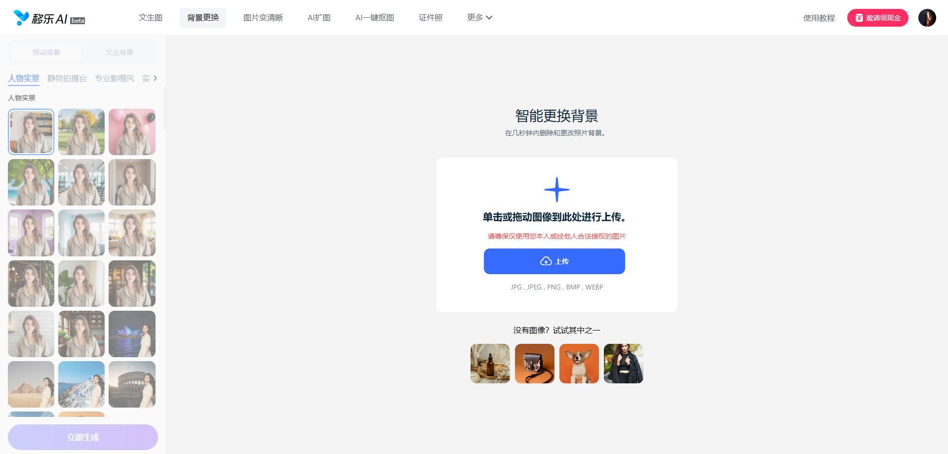 免费无限生成:移乐AI换背景工具完全免费使用,并且无限次生成,图片高清下载。