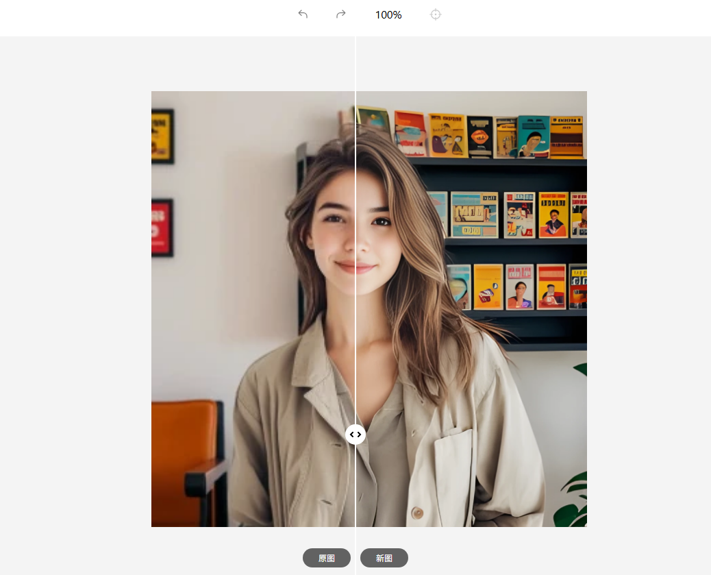 步骤5:当图片处理完成后,页面会呈现出“原图”和“新图”的对比效果。用户可以通过拖动页面中间的“对比滑杆”,左右滑动来仔细查看原图与处理后的新图之间的差异。