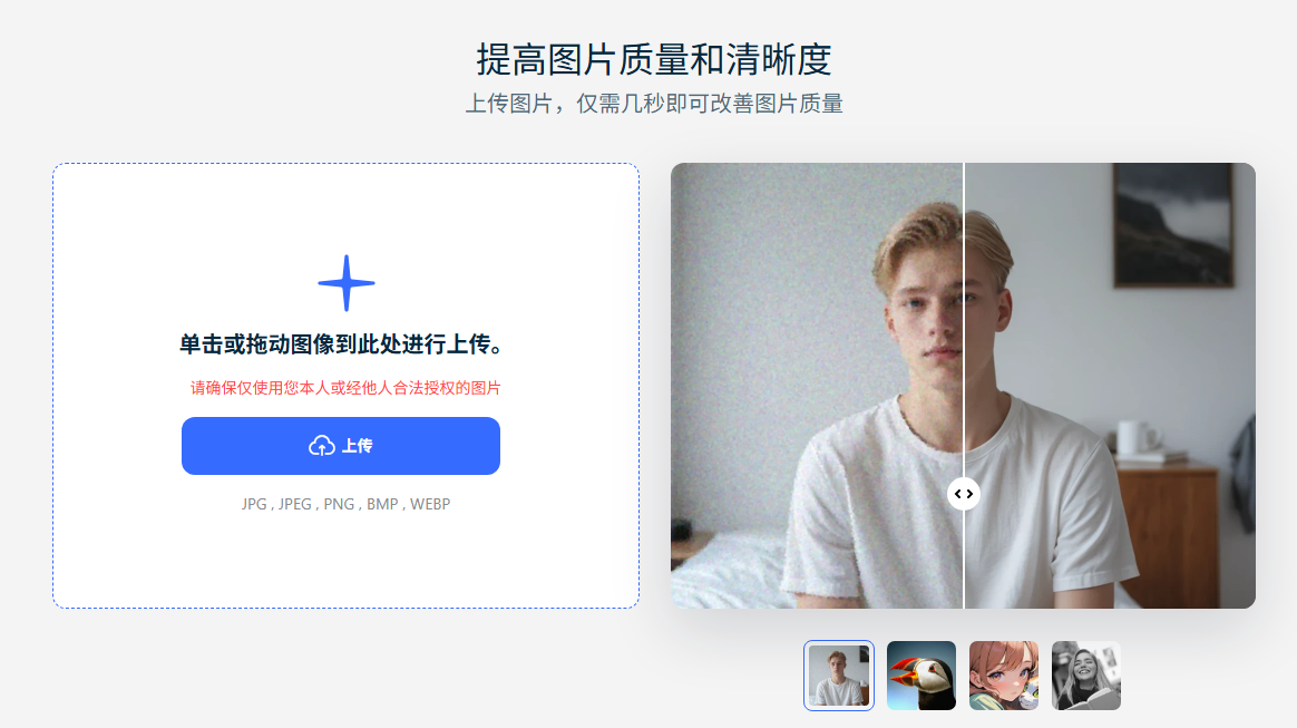如果觉得Photoshop操作复杂,不想学习专业的参数调整,那么移乐AI的图片变清晰工具会是更好的选择,它能让“模糊的图片怎么变清晰” 变得简单高效。当然,你也不需要担心价格问题,因为它是一个完全免费的在线工具哦!下面,我们先来看看关于模糊的图片怎么变清晰的问题,它是如何解决的。具体操作步骤如下: