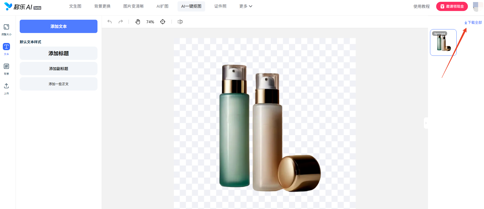 步骤6:图片处理结束后,点击网页右上角的“下载”按钮,就能免费将抠好的图片保存到本地电脑上了。