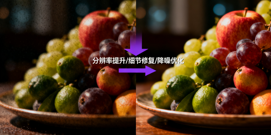 智能修复能力:自动检测并修复模糊、噪点、压缩损伤等常见问题;