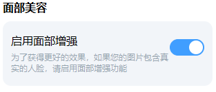 (4)启用面部增强:人像专属优化,还原清晰五官