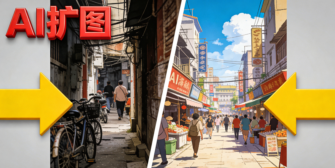 所以说,AI扩图与传统的“裁剪”或“拉伸”不同,它的核心在于“创造”——它不是简单地放大像素,而是基于对图像内容的理解,填补出原本不存在的合理部分。这种技术突破了传统扩图方式的局限,让“一键AI扩图”成为可能。